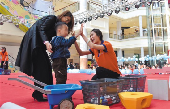 4月2日,早教老師與自閉癥患兒家庭協(xié)作完成互動游戲。當日是第十二個“世界自閉癥關(guān)注日”,圍繞今年的主題“消除誤區(qū),倡導全納”,銀川市文明辦、殘聯(lián)等單位聯(lián)合開展“藍色行動,愛不孤單”志愿服務(wù),通過宣講、捐贈、游戲等方式,倡導人們尊重、愛護自閉癥患兒,助其融入社會大家庭?!∮浾?白茹 攝