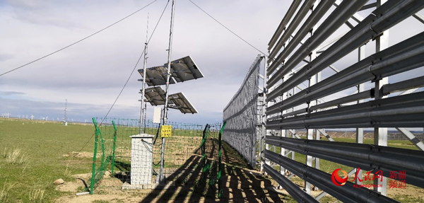 克塔鐵路線上設(shè)置的風(fēng)吹雪監(jiān)控設(shè)備。中國(guó)鐵路設(shè)計(jì)集團(tuán)有限公司克塔鐵路項(xiàng)目部供圖