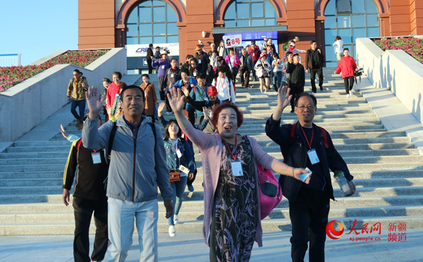 首趟遼寧援疆旅游專(zhuān)列抵達(dá)塔城市,送來(lái)了克塔鐵路第一批旅客。文博 攝