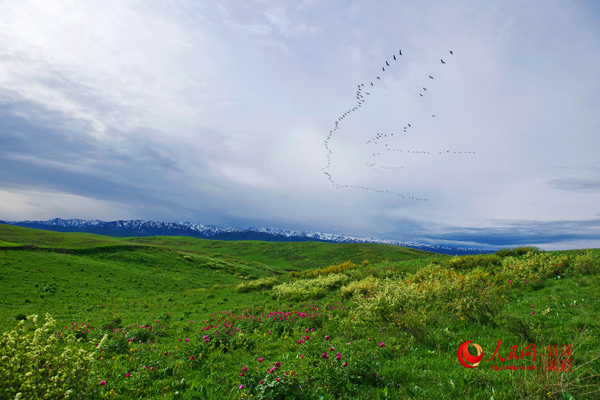 塔城地區(qū)裕民縣巴爾魯克景區(qū)山花開(kāi)放。塔城地委宣傳部供圖