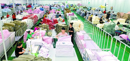 5月30日,來自喀什、和田等地的青年在阿拉爾潔麗雅新疆新越絲路有限公司生產(chǎn)車間工作。目前,該公司已接收喀什、和田等地的2200余名富余勞動力就業(yè),帶動112名建檔立卡貧困戶脫貧。王志清 攝