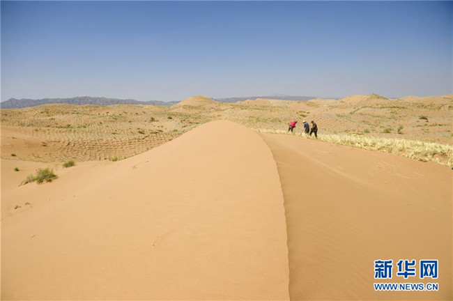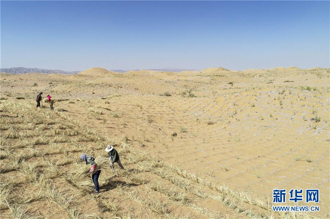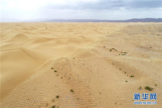 寧夏中衛(wèi)市位于騰格里沙漠南緣,在長(zhǎng)期抵抗沙漠化侵襲的實(shí)踐和探索中,一套“先固后治,固阻結(jié)合”的防沙治沙新模式在這里應(yīng)用。人們利用草方格固沙,在扎好的草方格中播撒草種,形成植物沙障。據(jù)了解,截至2018年底中衛(wèi)市已完成沙區(qū)治理147萬畝。新華社記者馮開華攝