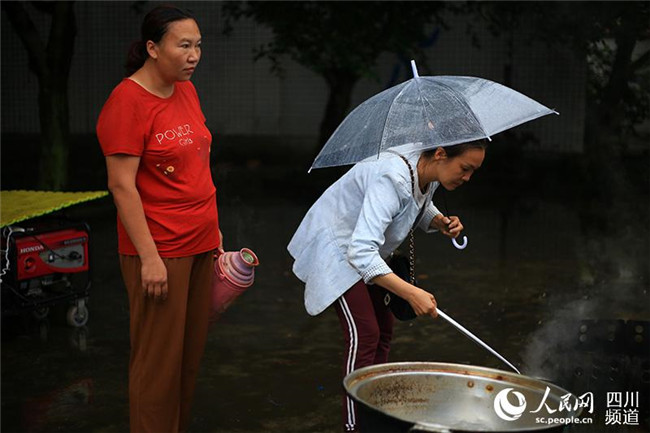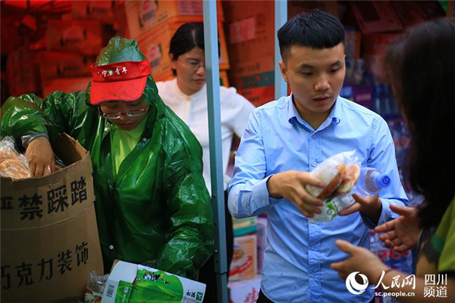 6月19日,宜賓長寧地震后的第二個(gè)清晨,安置點(diǎn)群眾領(lǐng)取了免費(fèi)的早餐。(人民網(wǎng) 朱虹 攝)