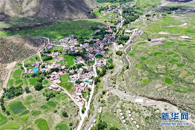 鳥瞰達東村景區(qū)(7月20日無人機拍攝)。西藏拉薩市柳梧鄉(xiāng)達東村是一個千年古村,也曾是一個貧困村。近年來,依托秀美的自然風光、深厚的歷史文化和淳樸的風土人情,當地政府實施文化旅游產業(yè)精準扶貧,使達東村蛻變成為鄉(xiāng)村旅游勝地。新華社記者普布扎西攝