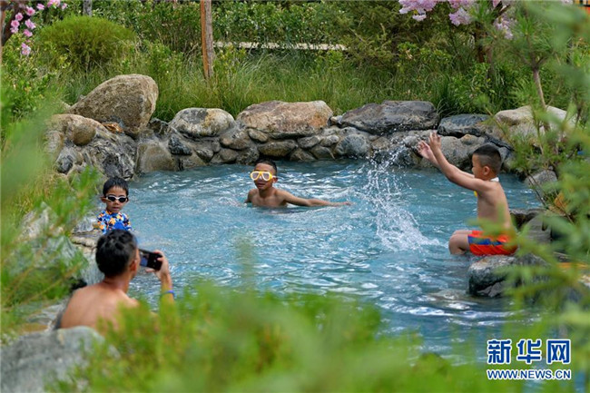 孩子們在達東村景區(qū)溫泉里嬉戲(7月20日攝)。西藏拉薩市柳梧鄉(xiāng)達東村是一個千年古村,也曾是一個貧困村。近年來,依托秀美的自然風光、深厚的歷史文化和淳樸的風土人情,當地政府實施文化旅游產業(yè)精準扶貧,使達東村蛻變成為鄉(xiāng)村旅游勝地。新華社記者張汝鋒攝