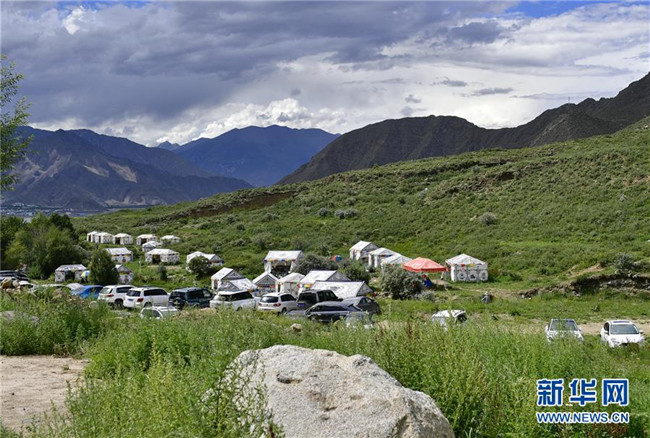 這是達東村景區(qū)的帳篷和旅游車輛(7月20日攝)。西藏拉薩市柳梧鄉(xiāng)達東村是一個千年古村,也曾是一個貧困村。近年來,依托秀美的自然風光、深厚的歷史文化和淳樸的風土人情,當地政府實施文化旅游產業(yè)精準扶貧,使達東村蛻變成為鄉(xiāng)村旅游勝地。新華社記者張汝鋒攝