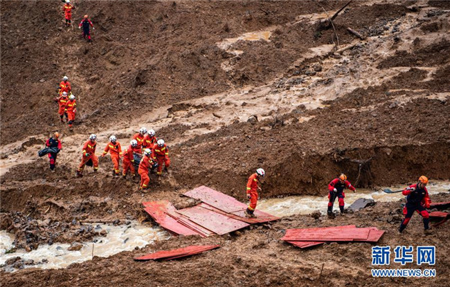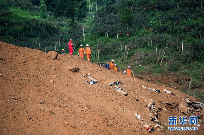 7月24日,救援人員在山體滑坡現(xiàn)場(chǎng)開展救援。 新華社記者 陶亮 攝