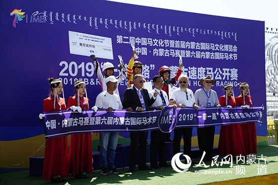 人民網(wǎng)呼和浩特8月21日電(富麗娟 實習(xí)生 李娜)8月21日上午,作為第二屆中國馬文化節(jié)暨首屆內(nèi)蒙古國際馬文化博覽會的重要活動之一的2019“一帶一路”內(nèi)蒙古速度馬公開賽,在內(nèi)蒙古少數(shù)民族群眾文化體育運(yùn)動中心開賽。比賽分為3場,共22對人馬組合參賽,爭奪國產(chǎn)純血馬1200米、成年馬組2750米和3歲馬組2000米比賽的桂冠。