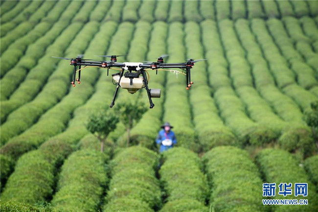 農(nóng)技人員操作植保無(wú)人機(jī)在貴州省安順市西秀區(qū)明英茶生產(chǎn)基地作業(yè)(5月23日攝)。 近年來(lái),貴州省圍繞產(chǎn)業(yè)選擇、培訓(xùn)農(nóng)民、技術(shù)服務(wù)、資金籌措、組織方式、產(chǎn)銷對(duì)接、利益聯(lián)結(jié)、基層黨建等“八要素”,通過(guò)“減、融、服”創(chuàng)新推進(jìn)農(nóng)村產(chǎn)業(yè)結(jié)構(gòu)調(diào)整,既帶動(dòng)了農(nóng)戶增收,也推動(dòng)了特色產(chǎn)業(yè)做大做強(qiáng)。 新華社記者 楊文斌 攝
