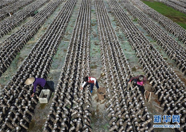 農(nóng)民在貴州省銅仁市萬(wàn)山區(qū)敖寨鄉(xiāng)中華山村的食用菌基地里采摘木耳(2018年10月29日無(wú)人機(jī)拍攝)。 近年來(lái),貴州省圍繞產(chǎn)業(yè)選擇、培訓(xùn)農(nóng)民、技術(shù)服務(wù)、資金籌措、組織方式、產(chǎn)銷對(duì)接、利益聯(lián)結(jié)、基層黨建等“八要素”,通過(guò)“減、融、服”創(chuàng)新推進(jìn)農(nóng)村產(chǎn)業(yè)結(jié)構(gòu)調(diào)整,既帶動(dòng)了農(nóng)戶增收,也推動(dòng)了特色產(chǎn)業(yè)做大做強(qiáng)。 新華社記者 楊文斌 攝