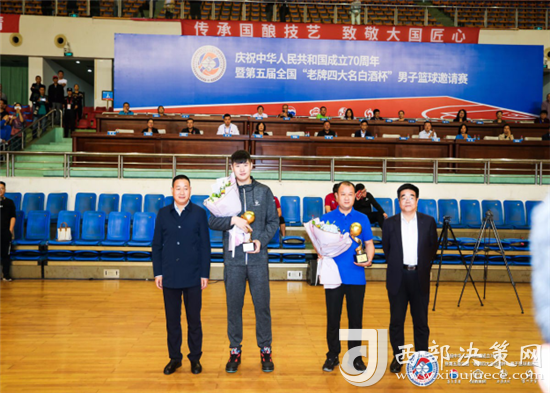 9月19日晚,由貴州茅臺(tái)酒廠(集團(tuán))有限責(zé)任公司、山西杏花村汾酒集團(tuán)有限責(zé)任公司、陜西西鳳酒廠集團(tuán)有限公司與瀘州老窖股份有限公司共同主辦,瀘州老窖股份有限公司承辦的慶祝中華人民共和國成立70周年暨第五屆“老牌四大名白酒杯”男子籃球邀請(qǐng)賽(以下簡稱“男籃邀請(qǐng)賽”)在酒城瀘州奧林匹克體育公園圓滿閉幕。貴州茅臺(tái)酒股份有限公司監(jiān)事會(huì)主席羅國慶,山西杏花村汾酒集團(tuán)有限責(zé)任公司黨委委員、董事、工會(huì)主席李明強(qiáng),陜西西鳳酒廠集團(tuán)有限公司工會(huì)主席陳軍紅,瀘州老窖股份有限公司黨委副書記、總經(jīng)理林鋒及黨委副書記、紀(jì)委書記、工會(huì)主席江域會(huì),信息總監(jiān)蘇王輝等領(lǐng)導(dǎo)和嘉賓出席了閉幕式。