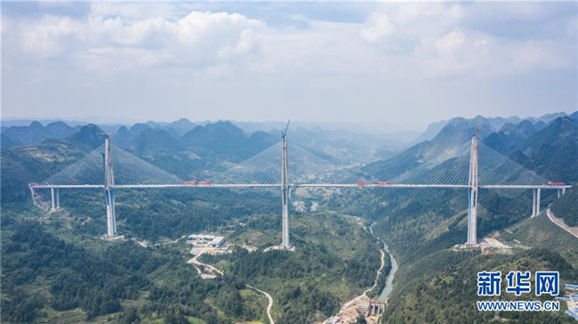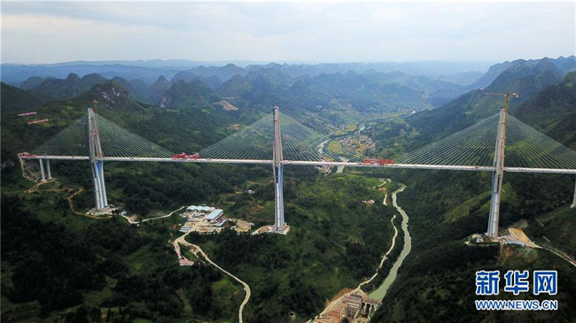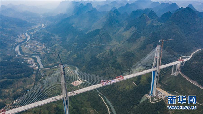 當(dāng)日,332米高的全球最高混凝土橋塔——貴州平塘至羅甸高速公路控制性工程平塘特大橋成功合龍。記者從貴州省交通運(yùn)輸廳了解到,平塘特大橋全長2135米,橋面寬30.2米,規(guī)劃雙向4車道,是一座三塔雙索面疊合梁斜拉橋。三座橋塔的高度分別為320米、332米和298米,相當(dāng)于在峽谷之中建了三座100多層高的大樓。平塘特大橋于2016年4月開工建設(shè),2018年11月橋塔順利封頂,計(jì)劃總工期為42個(gè)月,總投資15億元。此次合龍后,還要進(jìn)行橋面施工和欄桿等工程建設(shè),預(yù)計(jì)今年底全橋通車,屆時(shí)平塘到羅甸的通行時(shí)間將從2個(gè)半小時(shí)縮短至1小時(shí),將成為連接貴州南部的交通要道,對(duì)助推滇黔桂石漠化片區(qū)脫貧攻堅(jiān)具有重要意義。新華社記者楊文斌攝