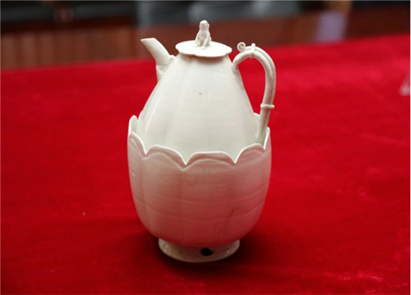 本次發(fā)現(xiàn)最具特色文物當(dāng)屬宋代官窯白瓷——白釉獅鈕瓜棱形帶花口溫碗執(zhí)壺。該款文物造型精美、器型罕見,國內(nèi)尚未發(fā)現(xiàn)同款,具有特別重要的歷史藝術(shù)和科學(xué)文化價(jià)值。經(jīng)陜西省文物鑒定中心鑒定:該文物屬國家一級,通高22.5厘米,壺口徑5厘米,底徑6.5厘米,溫碗口徑14厘米,底徑8.5厘米。該文物由蹲獅型鈕壺蓋、瓜棱形執(zhí)壺、帶鏤空足瓜腹形花口溫缽等三部分組成。從與該一級文物同時(shí)出土的慕志銘得知,該墓葬主人為宋代眉縣斜谷鎮(zhèn)下將張侍郎(相關(guān)于現(xiàn)今的鄉(xiāng)鎮(zhèn)教育專干)之父母(為合葬墓)。