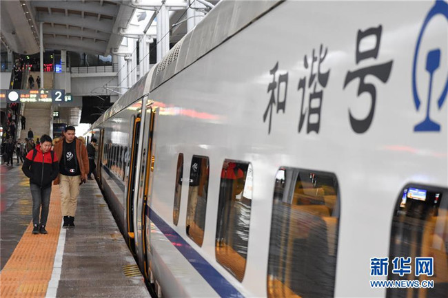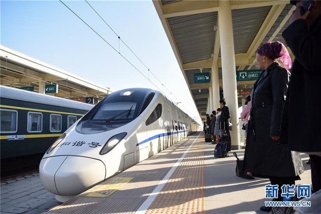 11月16日,在烏魯木齊站,乘客準(zhǔn)備登上由烏魯木齊開(kāi)往哈密的D8804次動(dòng)車(chē)組列車(chē)。新華社記者 丁磊 攝