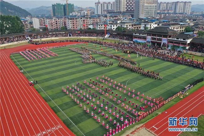 當(dāng)日,廣西融水苗族自治縣第十九屆蘆笙斗馬節(jié)開幕。本屆蘆笙斗馬節(jié)的內(nèi)容包括少數(shù)民族非遺文化展演、蘆笙舞比賽、扶貧產(chǎn)品展、美食節(jié)大賽、水上表演等民族特色活動(dòng)。 新華社記者 黃孝邦 攝