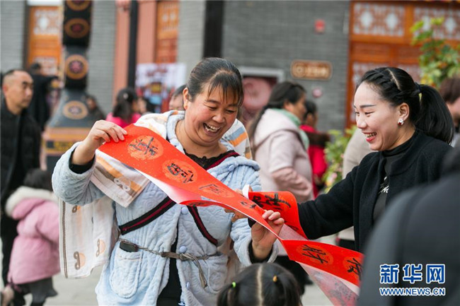 當(dāng)日,貴州省畢節(jié)市2020年迎新春“我們的中國夢”文化進(jìn)萬家惠民系列活動(dòng)在大方縣易地扶貧搬遷集中安置區(qū)奢香古鎮(zhèn)舉行。文化志愿者用小品、歌舞、義寫春聯(lián)、拍“全家福”等形式為搬遷群眾帶來了一場精彩的文化“盛宴”,讓易地扶貧搬遷安置點(diǎn)充滿濃濃的年味。