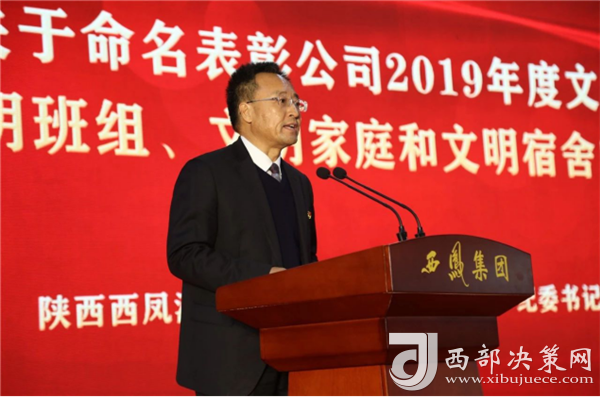 西鳳集團(tuán)公司黨委副書(shū)記、紀(jì)委書(shū)記劉周虎宣讀《關(guān)于命名表彰公司2019年度文明單位、文明班組、文明家庭和文明宿舍的決定》