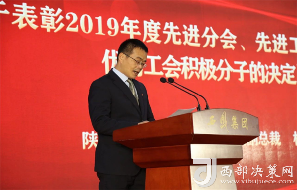 西鳳集團(tuán)公司副總裁楊會(huì)軍宣讀《關(guān)于表彰2019年度先進(jìn)分會(huì)和優(yōu)秀工會(huì)積極分子的決定》