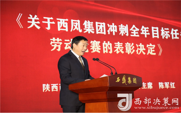 西鳳集團(tuán)公司勞動(dòng)競(jìng)賽領(lǐng)導(dǎo)小組辦公室主任、工會(huì)主席陳軍紅宣讀《關(guān)于西鳳集團(tuán)沖刺全年目標(biāo)任務(wù)勞動(dòng)競(jìng)賽的表彰決定》