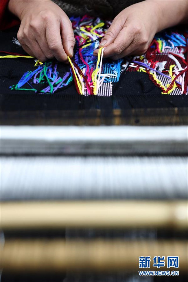 1月14日,在重慶市黔江區(qū)小南海鎮(zhèn)土家十三寨“西蘭卡普扶貧工坊”,員工在編織西蘭卡普。  新華社發(fā)(楊敏 攝)