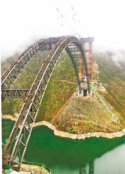 2月28日,鄭萬(wàn)高鐵巫山段大寧河雙線大橋正式復(fù)工建設(shè)。在建設(shè)現(xiàn)場(chǎng),工人們有的在裝卸建材,有的在大橋鋼管拱肋上作業(yè)。通訊員 盧先慶 攝