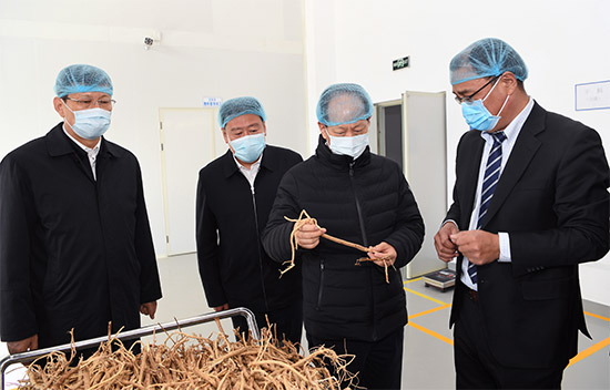 實(shí)現(xiàn)穩(wěn)定脫貧,發(fā)展產(chǎn)業(yè)是根本之策。石泰峰深入佰惠生新農(nóng)業(yè)、恒光大藥業(yè)、德青源農(nóng)業(yè)、宏發(fā)牧業(yè)、安琪酵母、恒都農(nóng)業(yè)等企業(yè)和部分專業(yè)合作社,考察特色產(chǎn)業(yè)發(fā)展、農(nóng)企利益聯(lián)結(jié)及帶貧促貧成效。當(dāng)?shù)匾劳旋堫^企業(yè)和專業(yè)合作社帶動,因地制宜發(fā)展種養(yǎng)加工業(yè),探索走出了“甜菜富民”“中藥富民”“金雞富民”等帶貧減貧特色路。七合堂村通過懂技術(shù)、善經(jīng)營的帶頭人引領(lǐng)發(fā)展野果產(chǎn)業(yè),促進(jìn)了群眾脫貧。石泰峰說,企業(yè)發(fā)展好了,扶貧效益才會更好,同時也能為鄉(xiāng)村振興提供有力支撐。種養(yǎng)殖業(yè)發(fā)展起來了,還可以“接二連三”,搞加工、搞旅游。他勉勵企業(yè)要提升規(guī)?;?jīng)營水平,不斷延伸產(chǎn)業(yè)鏈條,提高產(chǎn)品附加值,打造品牌,拓展市場,構(gòu)建穩(wěn)固利益聯(lián)結(jié)機(jī)制,讓發(fā)展成果更好惠及廣大群眾。