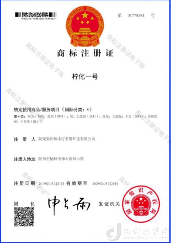 為了讓“檸條塔”煤的招牌更亮、勢頭更足,2017年,該公司又制定了提品質(zhì)、增品種、創(chuàng)品牌的“三品”建設三年行動方案,積極推行定制化生產(chǎn)模式,并適時推出“檸化一號”化工煤品牌。 有志者,事竟成,2019年,“檸化一號”終于拿到了國家知識產(chǎn)權(quán)局注冊證,同年“檸條塔”煤被授予“中國名優(yōu)產(chǎn)品”稱號。質(zhì)量強企的實踐,正在使檸條塔煤從燃料走向原料、從大漠走向江河、從內(nèi)陸走向沿海。