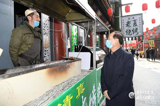 3月29日,自治區(qū)黨委書記、人大常委會(huì)主任石泰峰在呼和浩特市玉泉區(qū)塞上街了解商戶經(jīng)營情況。內(nèi)蒙古日?qǐng)?bào)社融媒體記者 袁永紅 攝