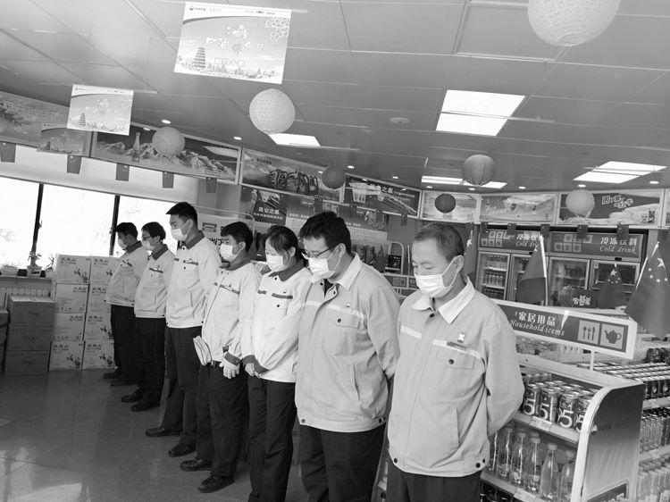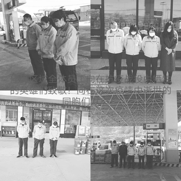 4月4日10時(shí),分公司機(jī)關(guān)、各區(qū)域和加油站有懸掛國旗的全部下半旗志哀,員工默哀3分鐘,在確保安全和正常經(jīng)營秩序的前提下,部分加油站組織進(jìn)站車輛鳴笛志哀。