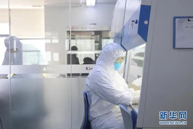▲實(shí)驗(yàn)室檢驗(yàn)人員在生物安全柜里面操作,對(duì)核酸樣本進(jìn)行提取。圖片來(lái)源:新華網(wǎng)