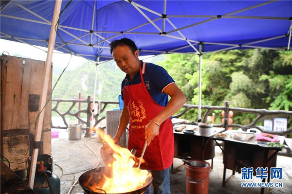 施六金在自家開(kāi)的農(nóng)家樂(lè)為客人準(zhǔn)備午餐(4月25日攝)。1973年出生于十八洞村的施六金,由于父親患病很早就放棄學(xué)業(yè)和母親扛起了家庭的重?fù)?dān)。為了生活,他還曾遠(yuǎn)去東南亞打工。2015年,看到家鄉(xiāng)的變化,施六金回到村里開(kāi)起了農(nóng)家樂(lè),年度家庭人均純收入也從2014年的1715元增長(zhǎng)到了2019年的35696元。2018年,施六金與心愛(ài)的人組建了家庭。今年初,施六金與愛(ài)人迎來(lái)了一個(gè)大胖小子。“做人做事要懂得回報(bào)和感恩。”施六金給剛出生的兒子取名施澤恩。新華社記者薛宇舸攝