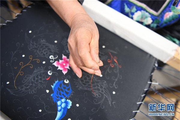 吳美金在十八洞村苗繡特產(chǎn)農(nóng)民專(zhuān)業(yè)合作社繡苗繡(4月24日攝)。1967年出生的吳美金,1992年嫁入飛蟲(chóng)村(現(xiàn)十八洞村飛蟲(chóng)寨)時(shí),只有爛泥路的飛蟲(chóng)村不僅田土少,掙錢(qián)活路也少,生活十分困難。2014年,吳美金加入了十八洞村苗繡特產(chǎn)農(nóng)民專(zhuān)業(yè)合作社,從小就會(huì)的苗繡傳統(tǒng)手藝如今成了家庭增收的法寶,不僅在家門(mén)口就把錢(qián)掙了,同時(shí)還能照顧年幼的孫子孫女。“現(xiàn)在的日子,比年輕的時(shí)候好多了。”吳美金說(shuō)。新華社記者薛宇舸攝