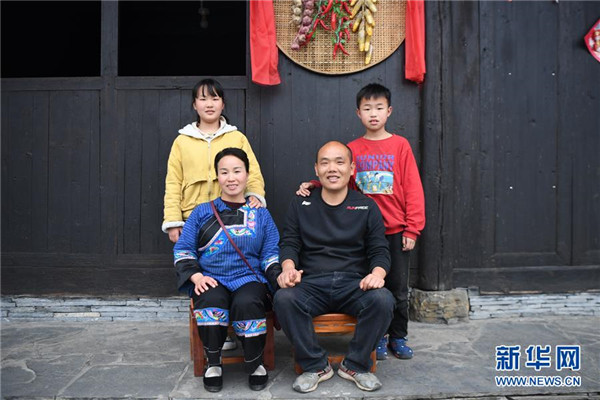 這是4月25日拍攝的楊正邦(前右)一家的合影。楊正邦1978年出生于十八洞村,在外打工多年。近些年,眼看來(lái)十八洞村的游客越來(lái)越多,村里越來(lái)越熱鬧,楊正邦在2017年結(jié)束自己的打工生涯回鄉(xiāng)發(fā)展。他先是在村里擺起小吃攤,2018年開(kāi)起農(nóng)家樂(lè),去年又搭起新房子擴(kuò)建成民宿,年度家庭人均純收入從2014年的1923元增加到2019年的7173元。新華社記者薛宇舸攝