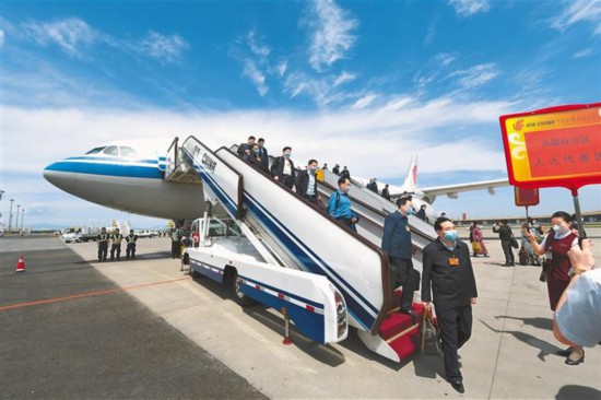 5月20日,參加十三屆全國(guó)人大三次會(huì)議的西藏人大代表抵京。本報(bào)記者 旦增西旦 攝