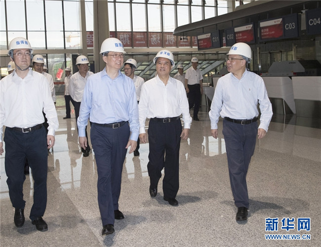 5月30日至31日,中共中央政治局常委、國(guó)務(wù)院副總理韓正在海南調(diào)研。這是5月30日,韓正在海口美蘭國(guó)際機(jī)場(chǎng)二期擴(kuò)建項(xiàng)目施工現(xiàn)場(chǎng),了解規(guī)劃建設(shè)和投產(chǎn)運(yùn)營(yíng)準(zhǔn)備情況。 新華社記者 王曄 攝