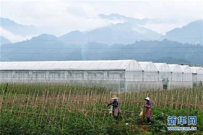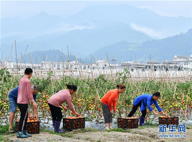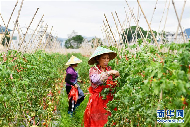6月2日,農民在貴州省榕江縣車江壩區(qū)采收西紅柿。 新華社記者 楊文斌 攝