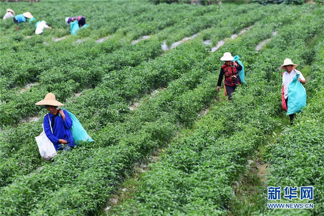 6月2日,農民在貴州省榕江縣車江壩區(qū)采收辣椒。新華社記者 楊文斌 攝