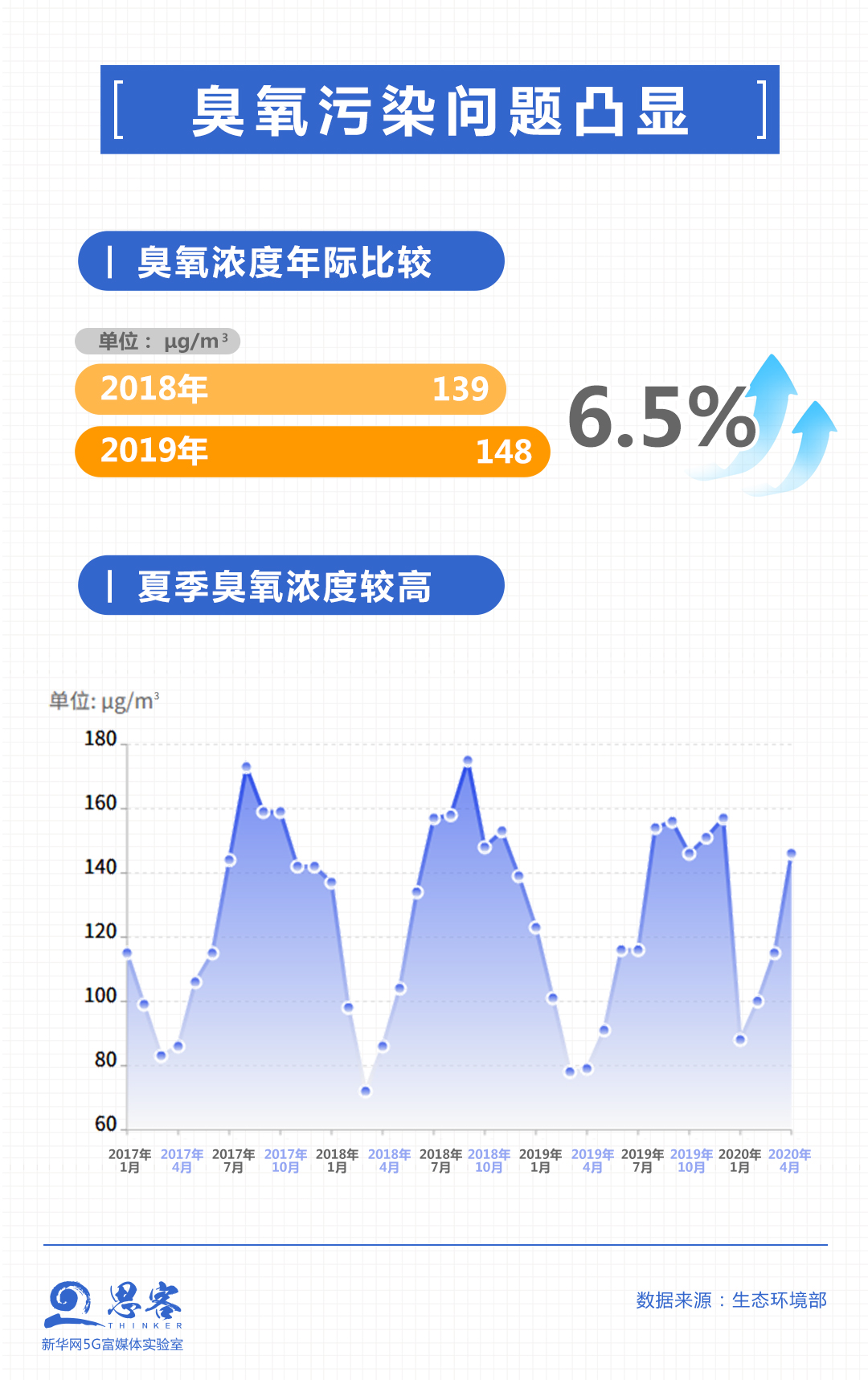 一到夏季,臭氧問題又顯現(xiàn)出來。高濃度臭氧會(huì)刺激和損害眼睛、呼吸系統(tǒng)等黏膜組織,危害不容小覷。對(duì)空氣質(zhì)量管理來說,臭氧超標(biāo)日數(shù)增多,已成為很多地區(qū)空氣優(yōu)良天數(shù)比例提升的最大拖累。2019年,全國337個(gè)地級(jí)及以上城市臭氧濃度同比上升6.5%,以臭氧為首要污染物的超標(biāo)天數(shù)占總超標(biāo)天數(shù)41.8%,僅次于PM2.5(占45%)。臭氧濃度大幅上升造成全國空氣質(zhì)量優(yōu)良天數(shù)比例同比損失2.3個(gè)百分點(diǎn)。
