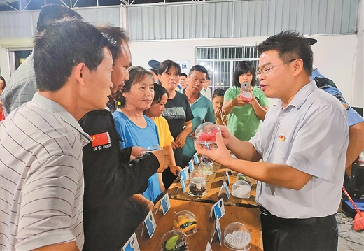 6月1日,上林縣鎮(zhèn)圩瑤族鄉(xiāng)組織黨員干部來(lái)到易地扶貧搬遷安置點(diǎn)扶貧車(chē)間,向搬遷群眾宣傳禁毒知識(shí),強(qiáng)化他們的禁毒拒毒意識(shí),樹(shù)立通過(guò)勤勞致富改善生活的理念。 藍(lán) 洲 潘小寶/攝
