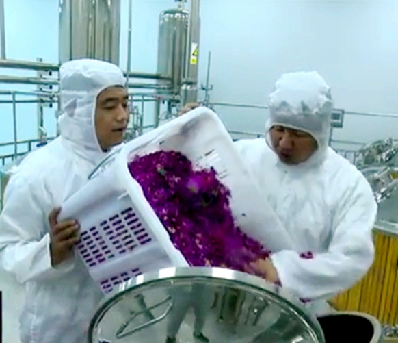 永登縣大手印玫瑰生產(chǎn)加工有限公司在工藝升級(jí)后,產(chǎn)能隨之?dāng)U大,收購(gòu)的鮮花量達(dá)到800噸,能夠幫助苦水鎮(zhèn)新屯川村和上新溝村3000戶花農(nóng)增收致富。目前,永登縣玫瑰種植面積達(dá)10.16萬(wàn)畝,帶動(dòng)建檔立卡貧困戶3000多戶,玫瑰產(chǎn)業(yè)成了當(dāng)?shù)孛撠毐夹】档闹еa(chǎn)業(yè)。