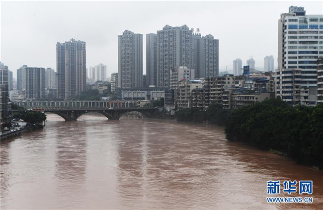 7月7日,洪水穿過綦江城區(qū)。新華社記者 王全超 攝