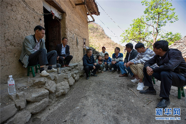 搬遷當(dāng)天,掛鉤幫扶干部和鄉(xiāng)鄰們上門道賀,掛鉤幫扶干部希望李本艷的父母——李守朝和陶大煥,能聽從安排、努力工作、勤勞致富,給孩子一個(gè)幸福的未來(攝于4月2日)。新華網(wǎng)發(fā)(鮑禹 攝)