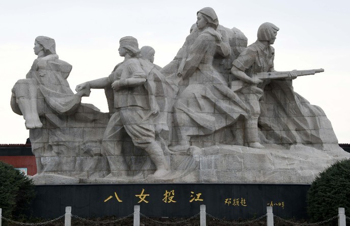 她們是東北抗日聯(lián)軍第5軍婦女團(tuán)的政治指導(dǎo)員冷云,班長胡秀芝、楊貴珍,戰(zhàn)士郭桂琴、黃桂清、王惠民、李鳳善和被服廠廠長安順福。1938年10月,該部在牡丹江地區(qū)烏斯渾河渡口與日偽軍千余人遭遇。已行至河邊準(zhǔn)備渡河的婦女團(tuán)8名成員,為掩護(hù)大部隊(duì)突圍,毅然放棄渡河,在冷云率領(lǐng)下,分成3個(gè)戰(zhàn)斗小組,與日偽軍展開激戰(zhàn)。她們主動(dòng)吸引日偽軍火力,使部隊(duì)主力得以迅速擺脫敵人的攻擊,但她們卻被敵人圍困于河邊。在背水作戰(zhàn)至彈盡的情況下,面對日偽軍逼降,女戰(zhàn)士們誓死不屈。她們毀掉槍支,挽臂涉入烏斯渾河,高唱著《國際歌》,集體沉江,壯烈殉國。犧牲時(shí),她們年齡最大的冷云23歲,最小的王惠民才13歲。