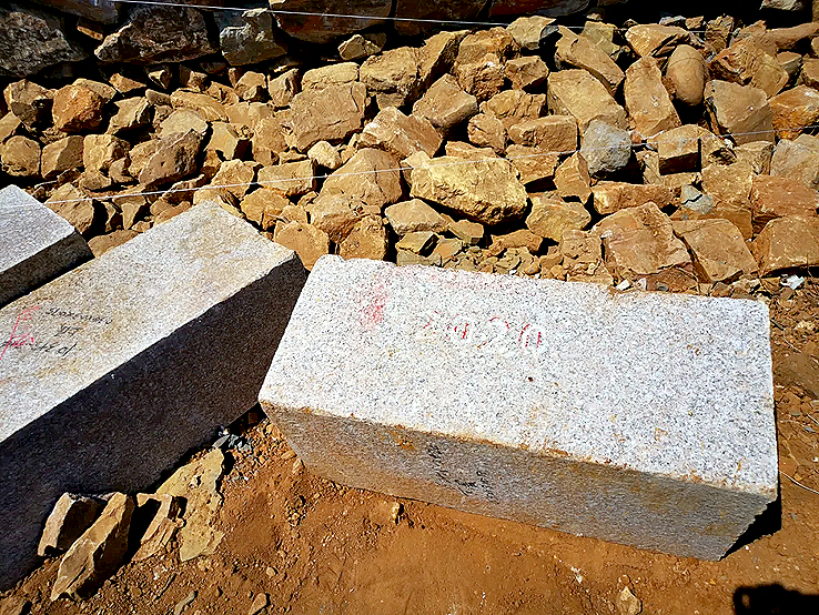 修繕前部分墻體因為坍塌被掩埋,需要先對坍塌的墻體進行清理,找出原墻址,為墻體修繕提供依據(jù)。清理墻址的同時,還有很多坍塌在原址的條石、磚、毛石等材料也會一同清理出來,施工方會進行分類碼放,以便重新利用。清理完成后,還會對露出的原墻址進行測量繪圖,留存資料。