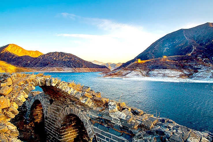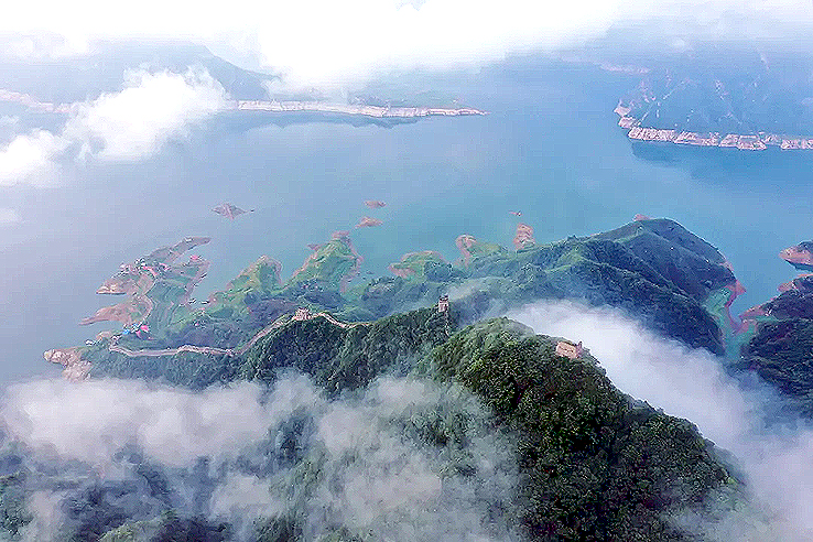 從空中俯瞰,長城順著逶迤的燕山山脈一直伸向水岸邊,猶如巨龍一頭扎進水里。一座水庫的出現(xiàn),不經(jīng)意間營造了絕美的“長城水鄉(xiāng)”。