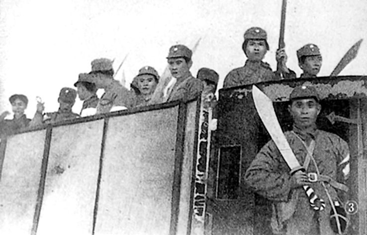 大刀隊奔赴前線。新華社資料片
