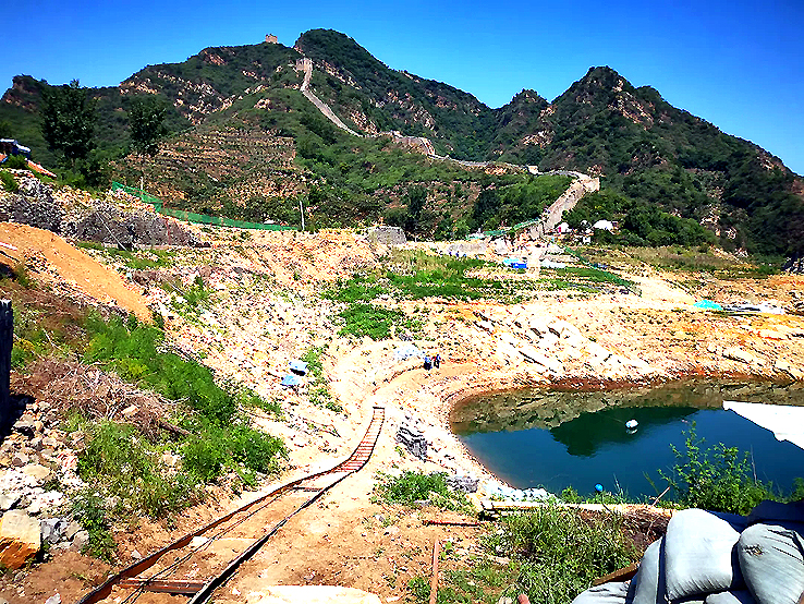 現(xiàn)場施工負責人杜勝軍說:“這段長城維修難點是運輸,今年水位下降比較厲害,增加了運輸難度。”
