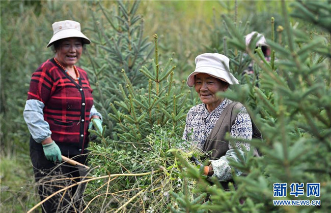 西藏昌都察雅縣卡貢鄉(xiāng)卡貢村村民在云杉育苗間里勞作(9月28日攝)。新華社記者 晉美多吉 攝