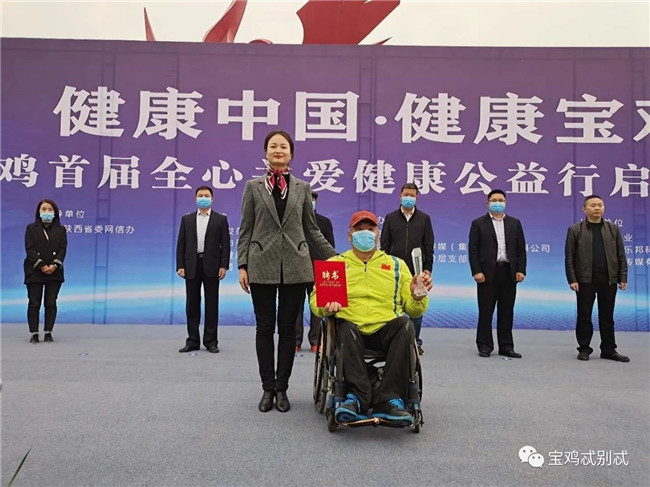 啟動(dòng)儀式上,寶雞籍殘奧會(huì)鐵餅冠軍范良受聘擔(dān)任本次健康公益行形象大使,他曾代表中國出戰(zhàn)2004雅典殘奧會(huì),2008北京殘奧會(huì),2012年倫敦殘奧會(huì),兩次以優(yōu)異的成績獲得金牌,并打破世界紀(jì)錄,為中國人民贏得了榮譽(yù)。其中,2004雅典殘疾人奧運(yùn)會(huì)、2008北京殘奧會(huì)鐵餅金牌得主。退役后帶領(lǐng)寶雞地區(qū)殘疾人創(chuàng)業(yè),一直致力于公益事業(yè)發(fā)展。