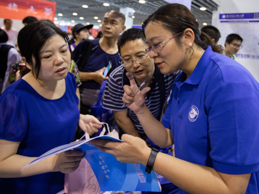 ▲考生家長在咨詢會(huì)上了解高校招生信息。新華社照片
